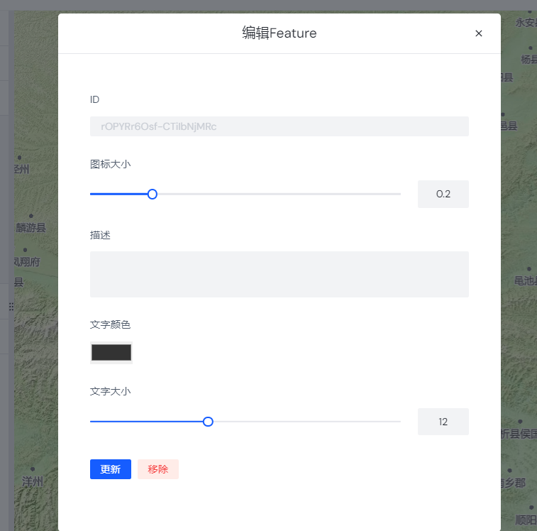 :点击以后,可以在地图上插入点,然后再点击左边栏目的名称,就可以设置“图标大小”“名称”“文字颜色”“文字大小”。