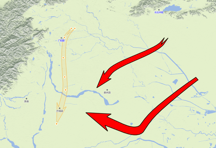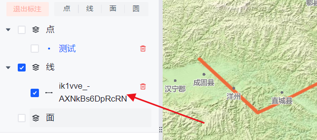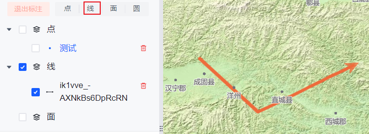 线:用户点击以后,就可以在地图上绘制箭头,双击结束绘制。