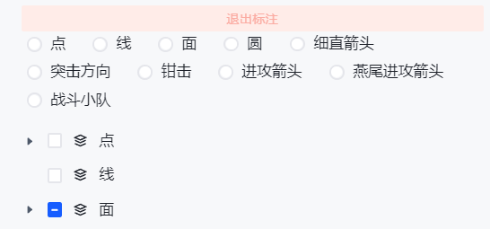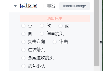 燕尾进攻箭头:点击以后可以在地图上面插入进攻箭头,双击可结束绘制。