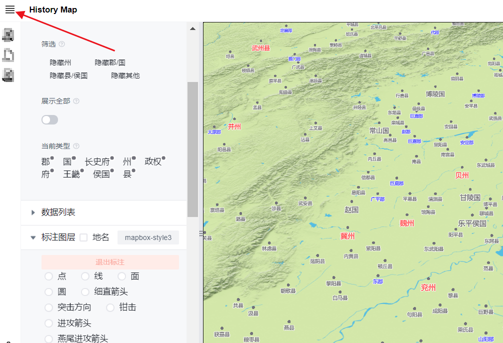 用户可以点击左上角的“”,隐藏边栏,以便更好的查看地图。