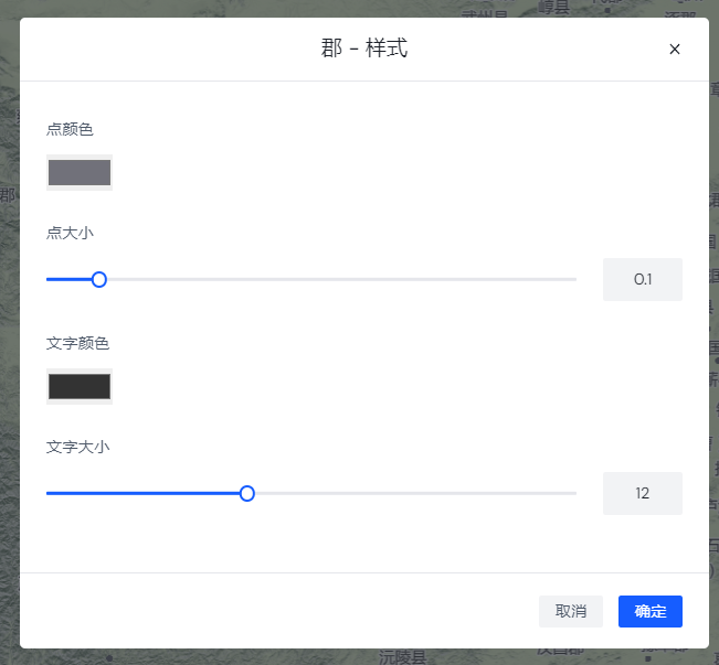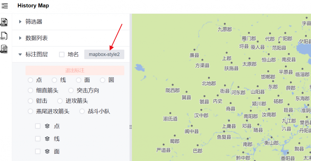 当前类型:这个是最重要的部分。它详细的显示了当前年份各个级别的行政单位,用户点击某个级别就可以为这个级别单独设置标注样式和文字样式。