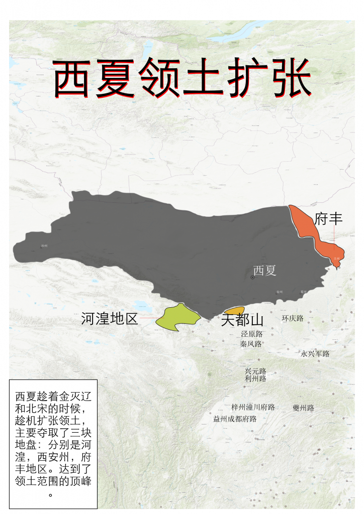 北宋于公元1127年灭亡,在这个前后,西夏趁机扩张了一些领土。下面就简单整理一下。
